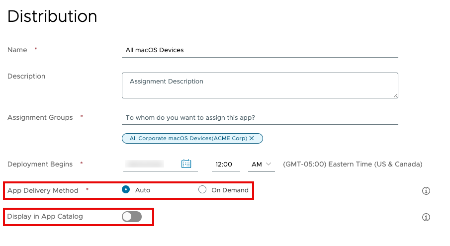 - Select Auto to deliver the app automatically or On Demand (to deliver the app when requested by the user from the catalog). For this exercise, select Auto.