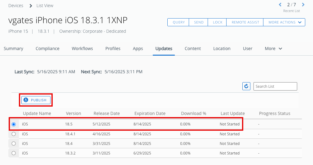 - Most Recent Version Wins: The most recent iOS Update assigned to a device takes precedence.