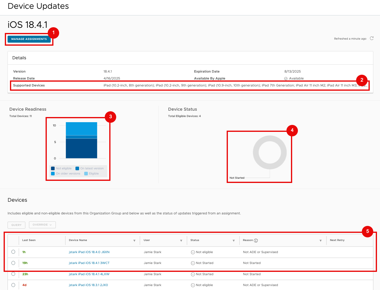 This section covers how to manage updates for individual devices, as well as how to override existing assignments.