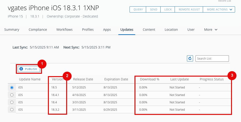 - Version - Indicates an iOS Update as discovered by the Workspace ONE UEM sync process with Apple’s product version lookup service.