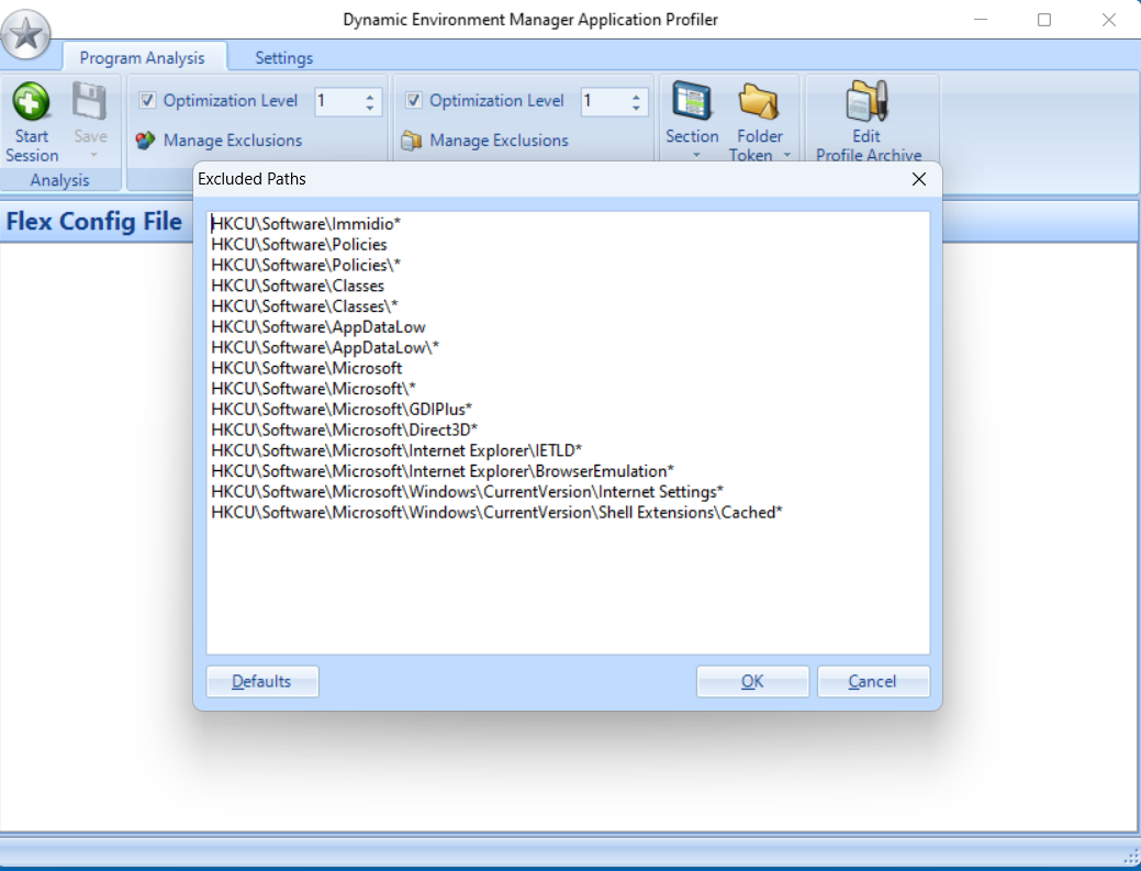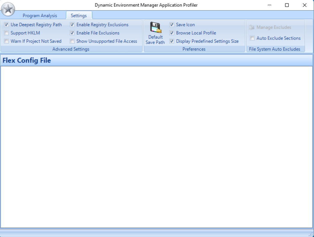- This provides the initial output in the DEM Application Profiler. If satisfied with the results, and where applicable, you can save the Flex Configuration file (and/or) save the Flex Configuration file along with predefined settings captured by the DEM Application Profiler.