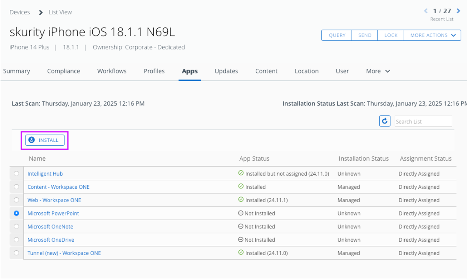 Figure 6: Example how admin can force app installation from UEM Console