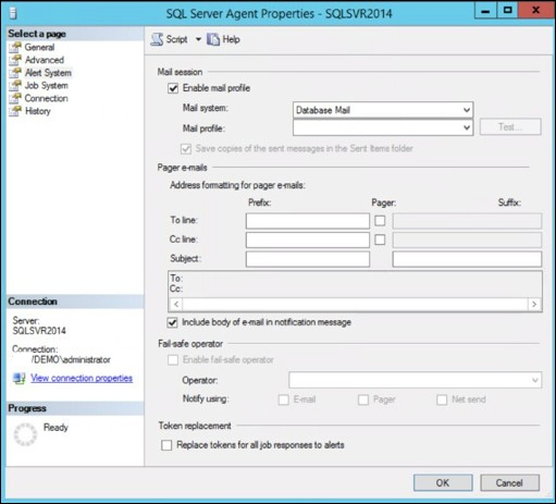 Note: SQL Server Agent must be enabled to send alerts.