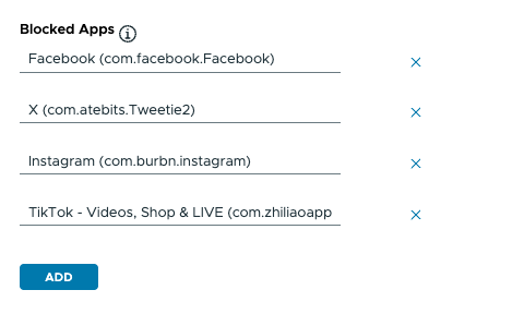 In this exercise, you create a denylist application group that includes the social media apps for Facebook, Instagram, TikTok, and X (formally known as Twitter).