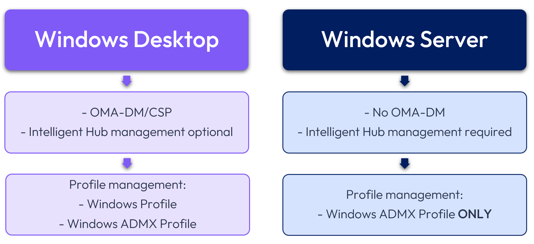 Workspace ONE provides several mechanisms for setting security and management policies on Windows devices, and this document details architectural and decision criteria for each option, as well as environmental considerations and troubleshooting.