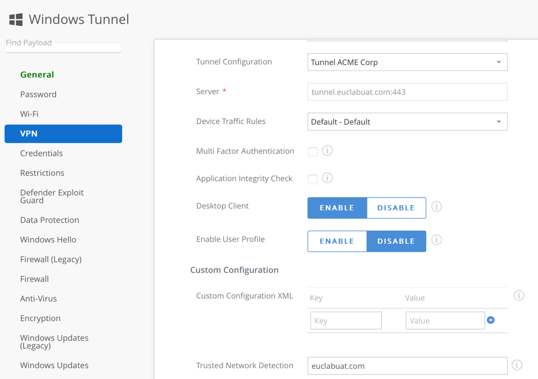- Set the Tunnel Configuration and Device Traffic Rules.