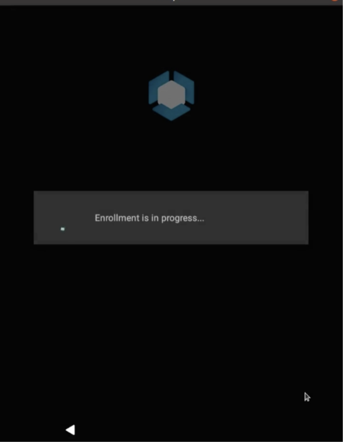 - The camera will automatically capture the QR Code, and the enrollment process will begin. The Downloading Status screen will appear as the WS1 Hub is downloaded from the cloud, followed by an Installing… notification.