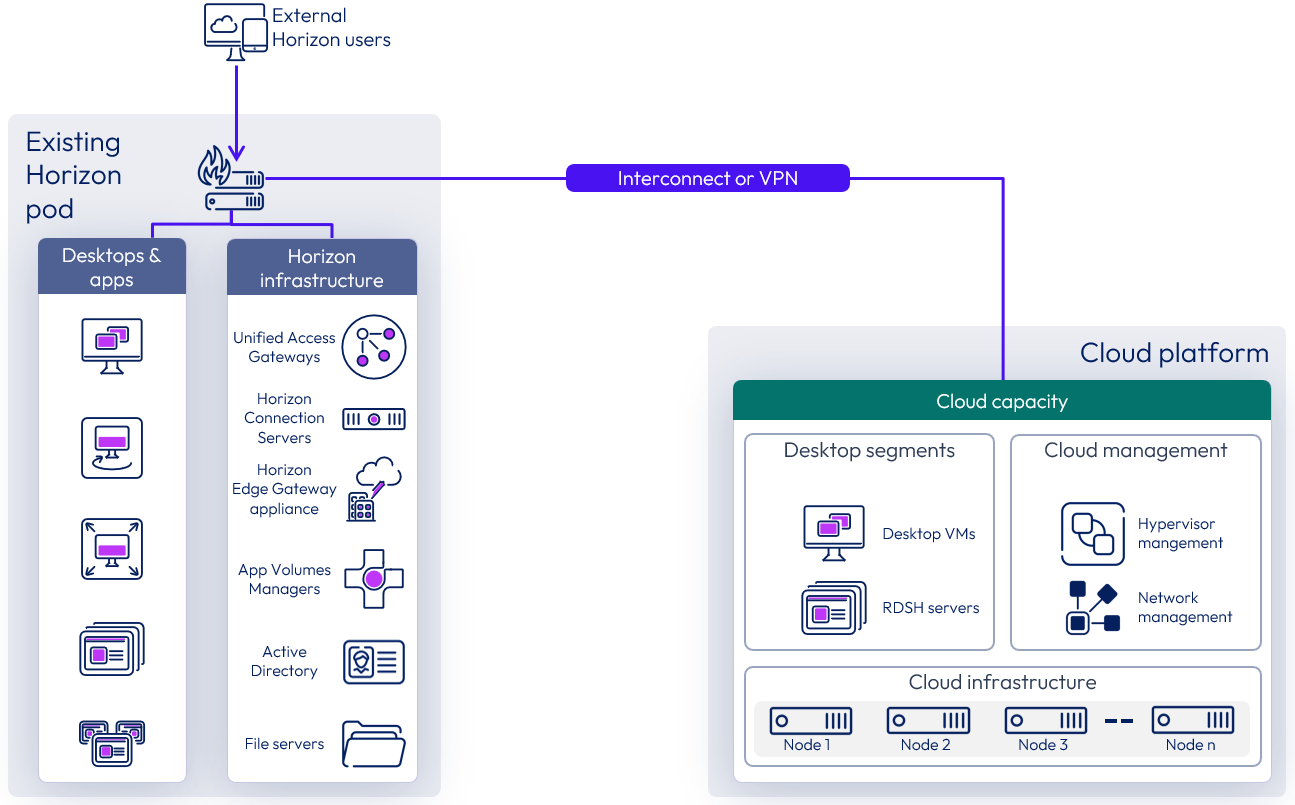 | 2025-05-15 | Restructured and rewritten. Diagrams updated. Separated out information and guidance on VMware vSphere deployments into its own section. Removed sections on Horizon Cloud Service – first-gen, Horizon Cloud Connector and Universal Broker -First-gen. URL links updated for 2503 releases. |