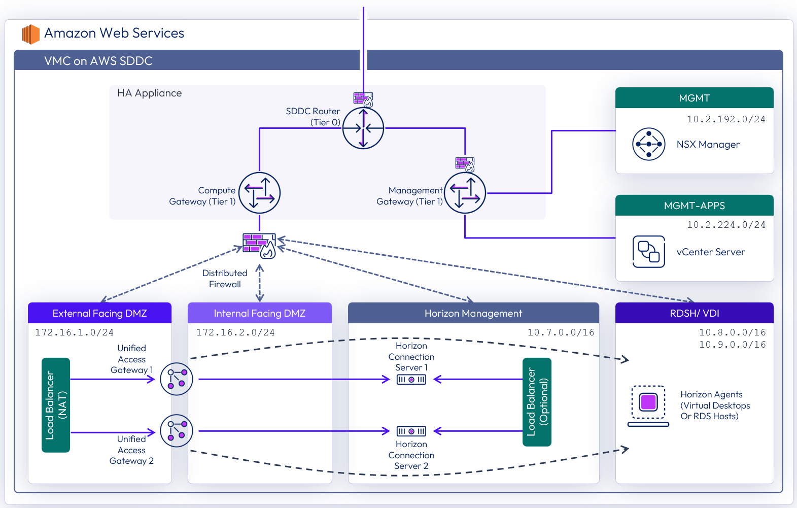 Figure 1: Omnissa Horizon 8 on VMC on AWS overview