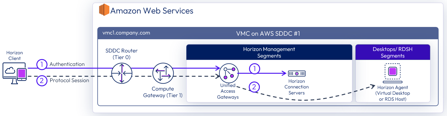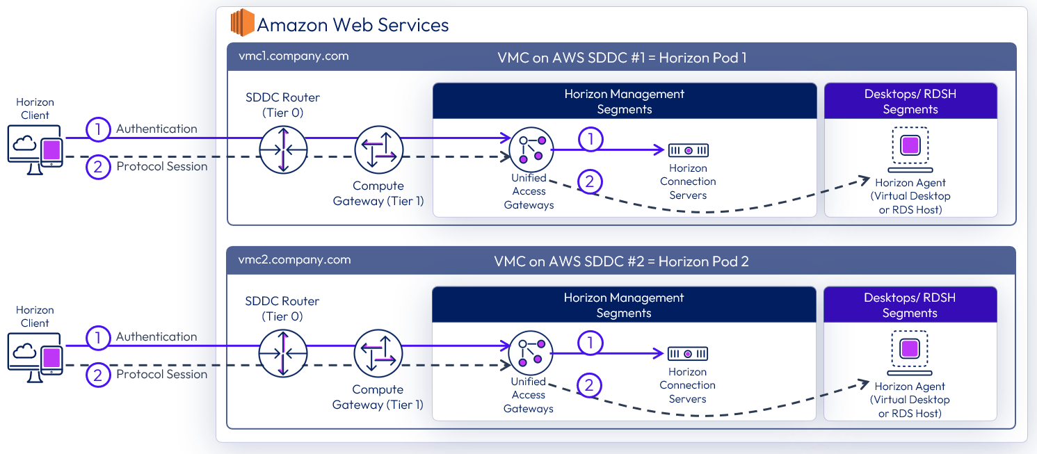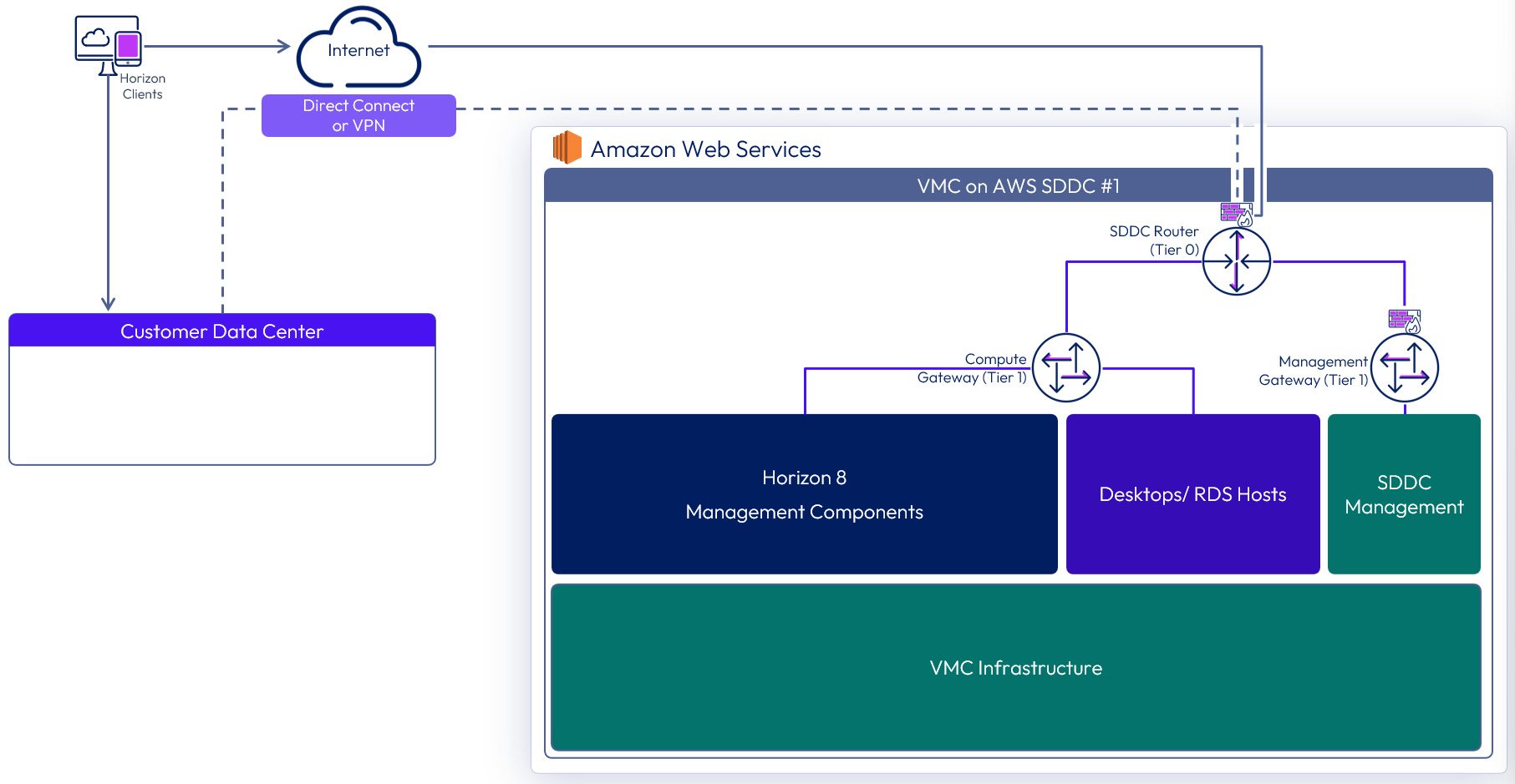 There are two possible deployment architectures for Horizon 8 on VMC on AWS: