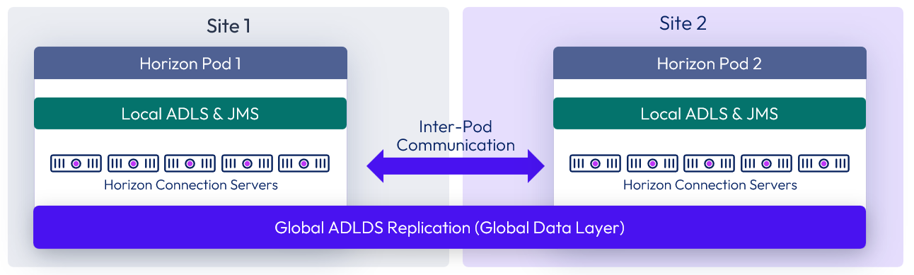 Important: CPA is not a stretched deployment; each Horizon pod is distinct and all Connection Servers belonging to each of the individual pods are required to be located in a single location and to run on the same broadcast domain from a network perspective.