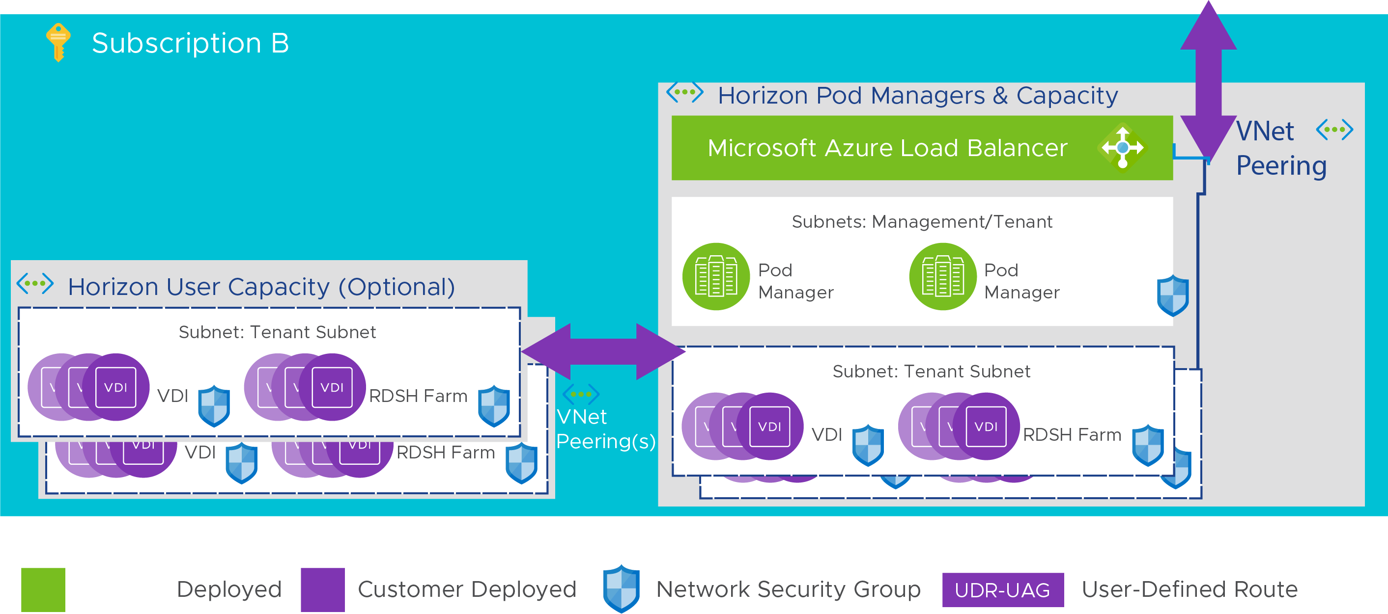 You can choose to deploy user capacity workloads into a separate VNet to distinguish user workloads from each other within your pod’s subscription. There are some limitations to this configuration that are detailed in Overview of Using Multiple Tenant Subnets with Your Horizon Cloud Pod for Your Farms and VDI Assignments.