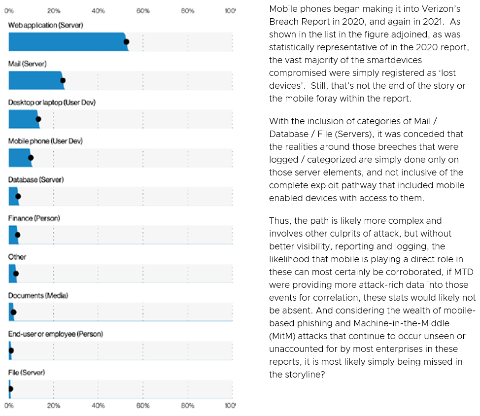 However, where this picks up in our discussion surrounds gaps in coverage for ‘all’ devices, including mobile-enabled ones. In order for these threat actors and their tools to get a foothold, often take several gaps in the defenses of a device, network and backend. And as the mobile device has 2 of 3 elements directly in the crosshairs, e.g. the app / web session, on the device and interacting over a wireless network based connection, this leaves the device’s OS, the app itself and the network in question, all as potential footholds to be used to gain access to the device, the app data or the communications being sent over that connection and ultimately to that backend server/service, cloud or enterprise hosted?