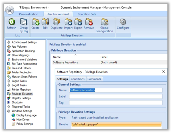Configuring Privilege Elevation with Dynamic Environment Manager