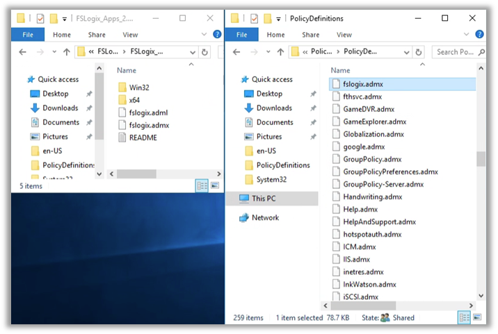 ADMXandADMLfiles to thePolicyDefinitionsfolder:- Navigate to the FSLogix download bundle.