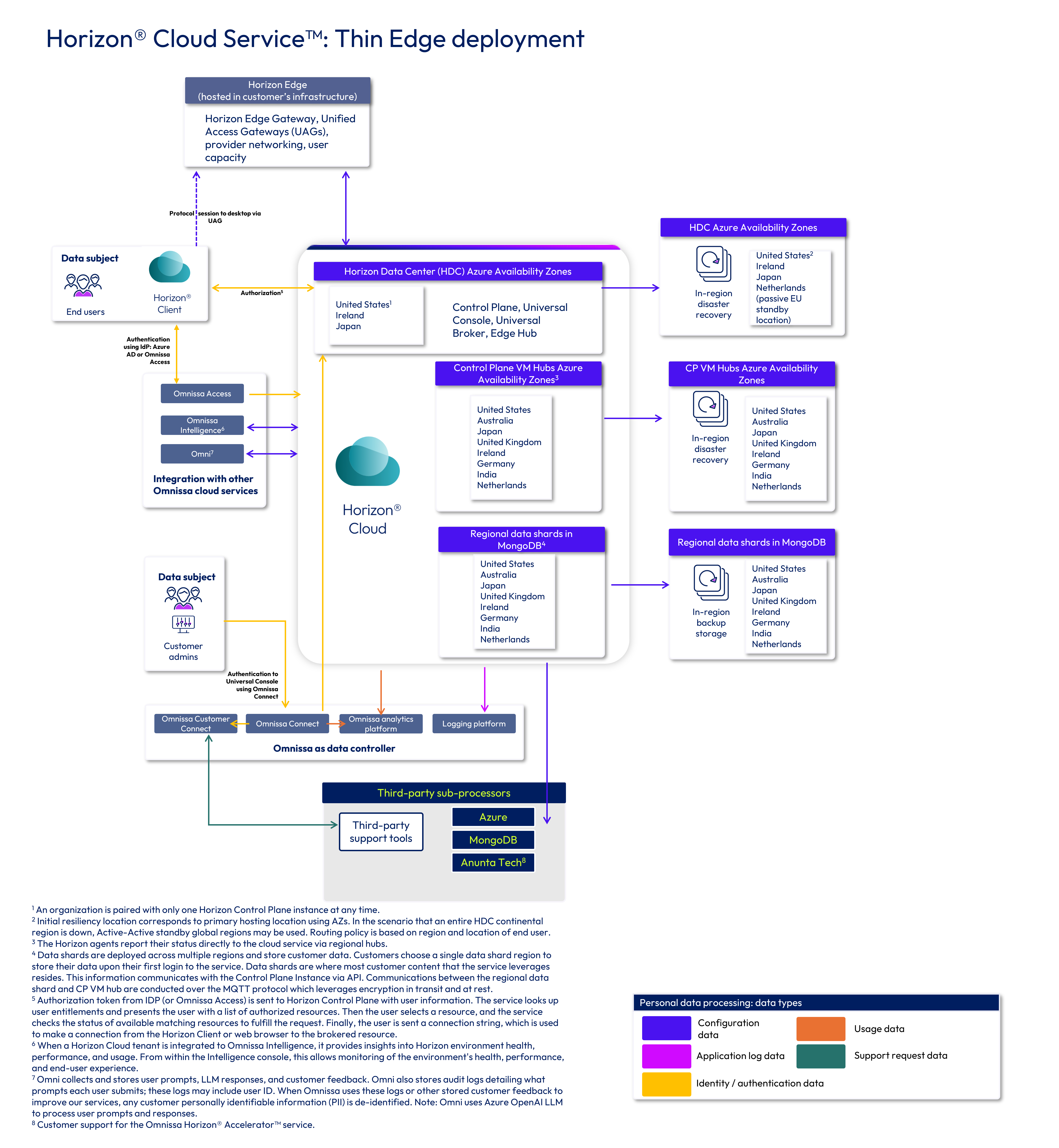 Table 2: Data processing by component for Horizon Cloud