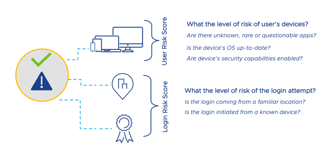- User risk score, which can be calculated based on known vulnerabilities, user and device actions, and security risks detected by an Endpoint Protection Platform or similar product. See Risk Scoring (Workspace ONE Intelligence Risk Analytics).