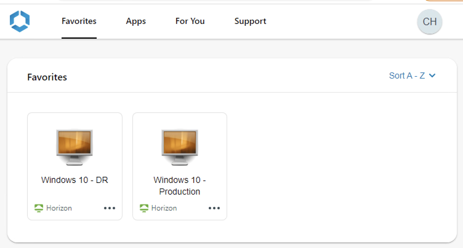 Where Horizon Client is being used without Universal Broker or Cloud Pod Architecture, or if Horizon is not integrated into Workspace ONE Access, the production and recovery resources must be presented separately to users.