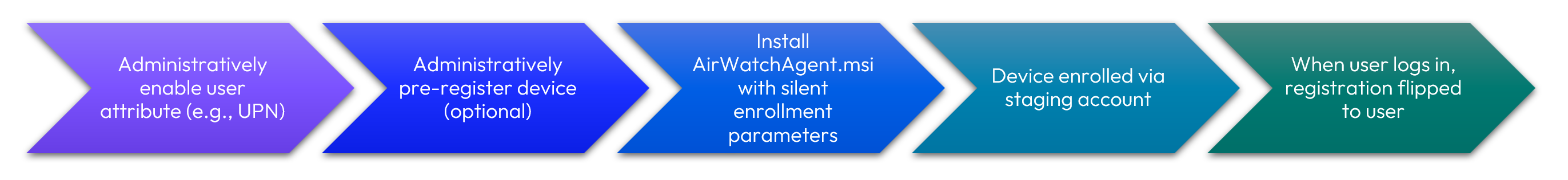 A staging account is applicable to all types of silent enrollments. While a staging account is automatically created with your Workspace ONE account, changes to that account and/or adding accounts are common.