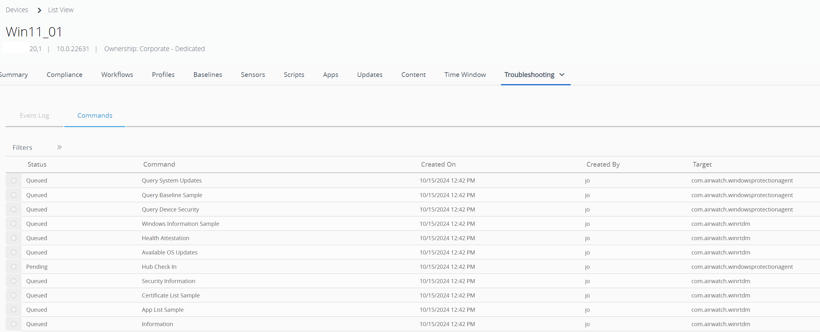 In this section, validating the status of Windows devices and general troubleshooting will be discussed. For step-by-step details about troubleshooting and logging, please also see Omnissa documentation.