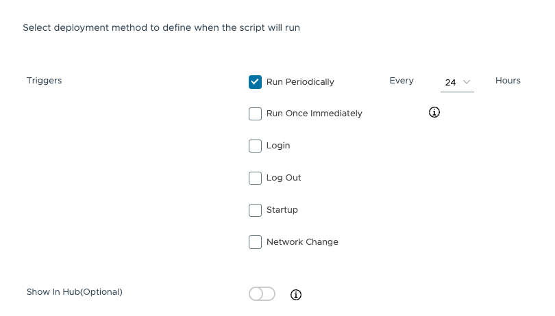 This script will send a notification to the logged-on user to let them know there is a pending update. The user will be given the opportunity to either begin the update or defer it for a later time. A maximum number of deferrals is configured within the script. The hubcli notify command is used to the send the notification, and the mdmcommand to start the update.