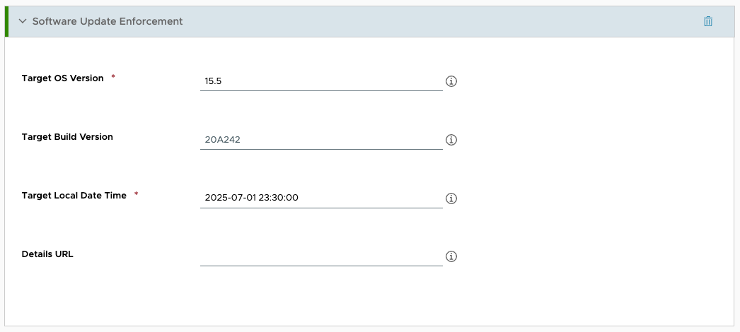 macOS 15.5 Updatesfor the profile name. - Scroll down the list of payloads until you find Software Update Enforcement and click Add.