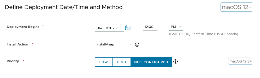 | Deployment Begins | This sets the date and time when the deployment will begin. |