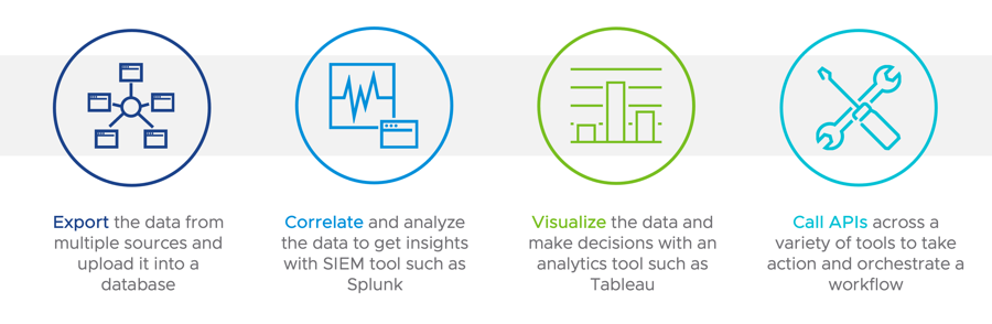 - Threat mitigation – You can aggregate threat data from external sources such as CVE lists and Workspace ONE Trust Network. You can analyze risk in-context to your environment and fix with automation.
