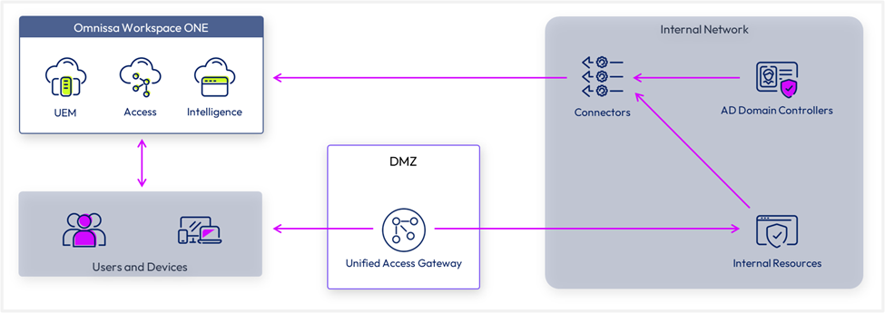 Figure 3: Connectors and the Unified Access Gateway (UAG) are used to securely access internal network resources