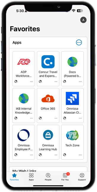 The Workspace ONE Intelligent Hub application allows end users to access enterprise and web apps, stay connected with colleagues, and be productive on any device (Android, iOS, macOS, Windows) from anywhere.