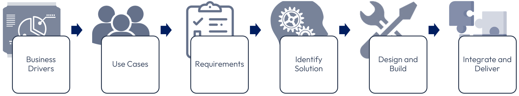 Once the requirements are understood, the solutions can be defined, and blueprints outlined for the services to be delivered. This step allows you to identify and understand the products, components, and parts that need to be designed, built, and integrated.